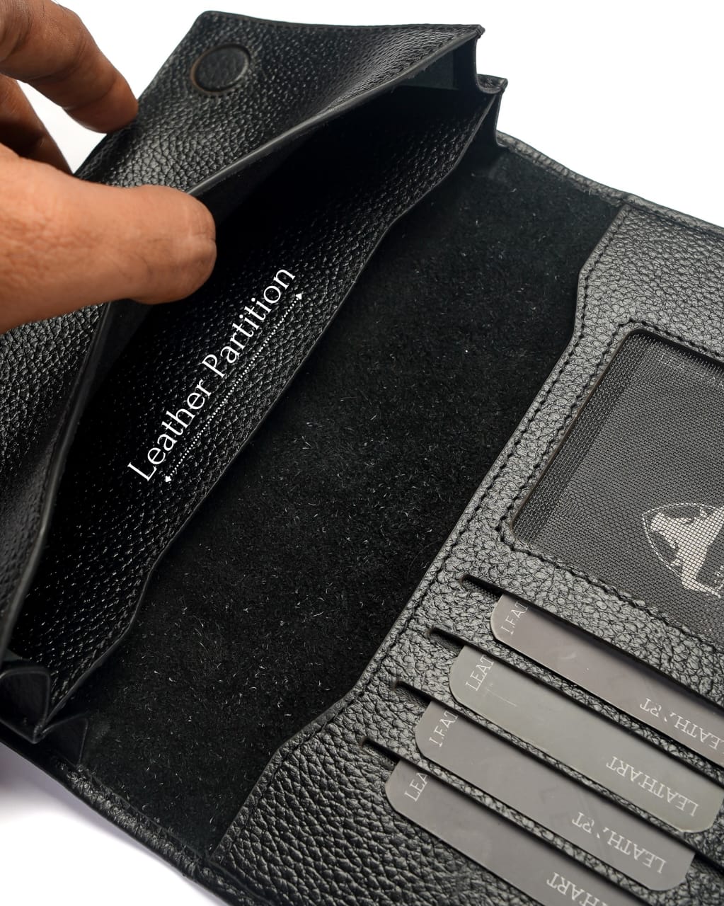 With ample card slots, spacious compartments for cash, 2 mobile chamber, it keeps your essentials organized while ensuring quick and easy access.
